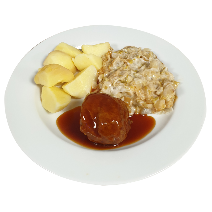 Kalfsgehaktbal Vleesjus Witlof a la Créme aardappelpuree (natrium/zoutarm)