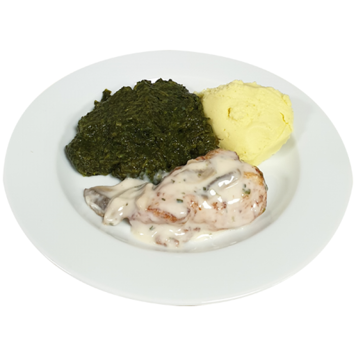 Kipfilet Champignonsaus Spinazie Aardappelpuree (natriumarm)