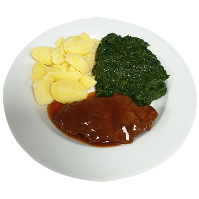 Runderlap Vleesjus Spinazie Aardappelen gekookt
